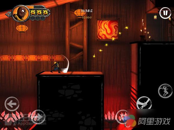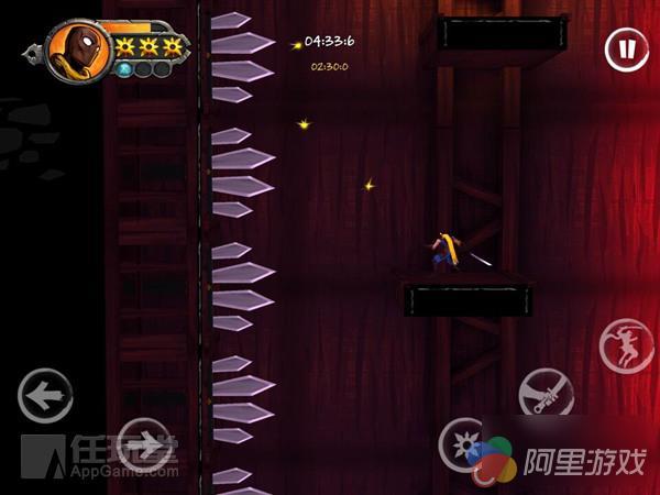 操作上提供了手势和虚拟按键两种方式,在手势模式下,点击左右半屏可以控制人物移动,向斜上方划动的话可以让主角跳跃,快速划动两次为二段跳。但是手势操作的弊端也非常明显,最让人犯难的就是远距离冲刺跳跃,各种手势的搭配会让你手忙脚乱。