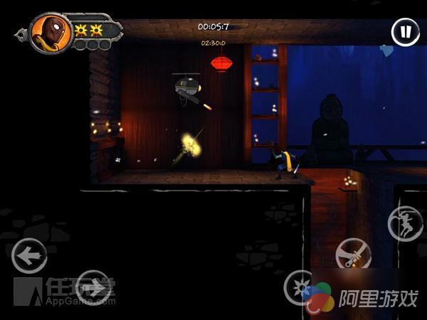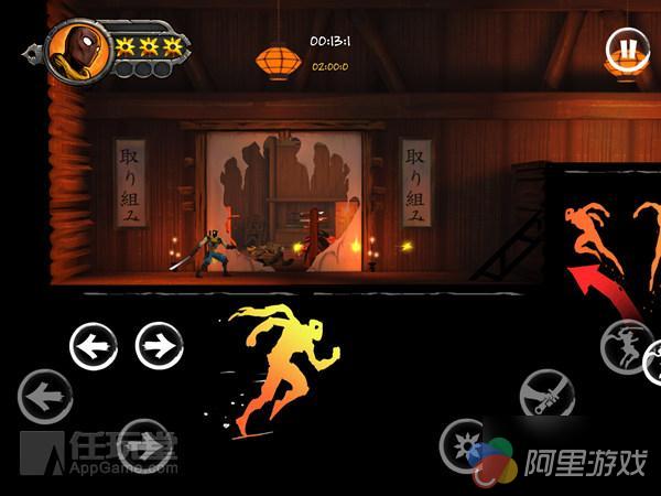 忍者除了一身忍者装备外,他的行动也是相当给力的。不仅拥有如同真正忍者的飞檐走壁和轻功,还能够在半空中配合方向键以及攻击键使出强劲的破坏式冲击。而且他可以随机使出他独有的攻击方式,在敌人身后悄悄接近还能使出暗杀招式。面对面接近敌人还可以“必杀闪身一击!
