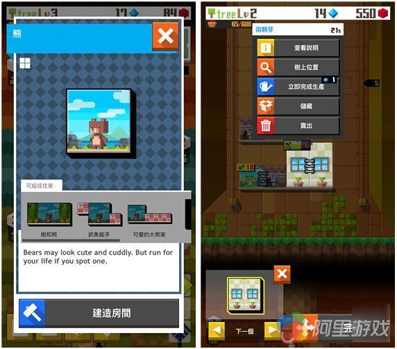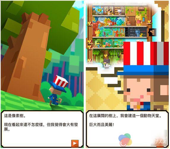 不知道是不是受到人类世界的影响,动物们也知道什么叫寸土寸金了?它们选择居住的地方从地面来到了树上,这是一棵巨大的像素树,虽说是像素风游戏,但是在精细度和润色方面丝毫不逊于市面上的其他像素经营游戏,而郁郁葱葱的森林背景更是给人一种惬意的感觉。