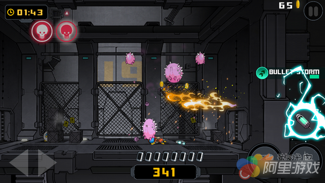游戏的过程当中,玩家将会控制角色进行水平方向上的位移,而作为敌人的昆虫将会从四面八方飞出。不过总的来说他们都会从主角的头顶向下落,而我们要做的,就是始终向上射击。游戏中讲究连击,击中敌人的次数越多,获得的必杀能量值以及武器攻击力就越强,同时为了让玩家更好的秀一波操作,游戏还设置了滑步功能,点击即可令玩家向前快速位移非常方便。