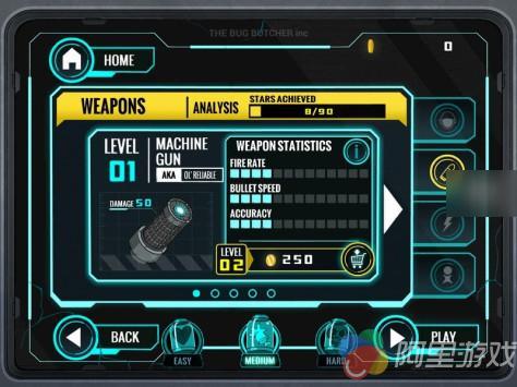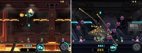 在弹药耗尽之后,武器就会消失。黄色水滴状道具能够短暂提升角色的战斗力,比如伤害加倍,我们可以将其理解成一种“兴奋剂”。在杀虫的过程中,位于屏幕右下方的圆形气槽会逐步点亮(如果你想快点积满,就要保持Combo),之后就会在全场冰冻、起泡护盾、集束导弹清场和无敌药剂这四种逆袭杀招中随机出一种供玩家自救。