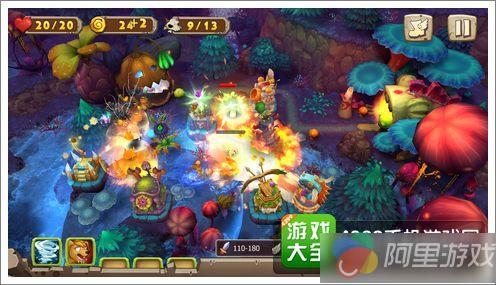 游戏以塔防战斗为主,玩家们要做的就是在野兽进攻的道路两边安放合适的防御塔,用它们来消灭入侵的野兽。对于塔防游戏相信大家都有所了解了,本作的操作比较简单,直接点击道路两旁的固定位置即可出现防御塔选项,想要安放哪一个防御塔就点击它即可,当然在战斗中还可以点击防御塔对它进行升级强化,以此提升防御塔的攻击力。本作唯一不方便的地方就是防御塔的安放位置已经固定了,只能在道路两边的固定地方安放,相比《保卫萝卜》这种可以自由放置防御塔的游戏而言,难度会稍微大一些。
