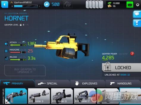 作为战争游戏,枪械永远是摆在首位。玩家可以使用四类武器,不同武器不同威力和射击频率,作用更是天差地别,合理使用不同枪械以达到最大效率消灭敌军的效果。同时枪械的外观随着等级提高会变得越来越酷炫。