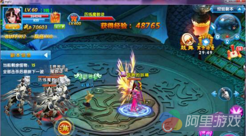 副本玩法:玩家进入副本后,会刷新出一批经验怪,经验怪一共有3波,波数越往后,经验怪所带的经验越高,击杀经验怪可以获得大量经验,成功通关3波后,可以赢取副本的胜利。