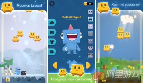 本作是一款轻松的休闲游戏,玩家在游戏中将会来到一个方块的世界之中。游戏的玩法非常简单,玩家要通过扔雪球的方式保证一群鸭子保持在天空之中。虽然听起来游戏的玩法很简单,不过实际操作起来还是有一定的难度的。游戏中将会有多个角色,玩家可以在游戏中解锁这些角色使用。