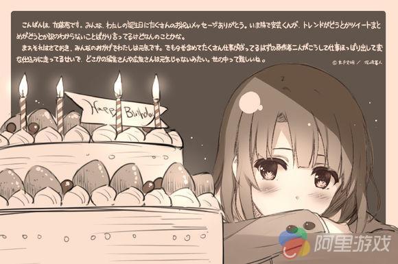 这张图是以加藤惠为第一视角,表达生日当天对于粉丝们祝福的感谢。而应该是原作执笔·丸户史明撰写的话语中,圣人惠说:“大家晚上好,我是加藤惠。感谢大家在我的生日时送上这么多的祝福。现在我旁边的安艺君正在说些什么趋势、推特总结啥的话,根本听不懂啊。哎呀,这些先不管啦,托大家的福,我很有精神的。不过两名原作者因为包括第九卷在内的众多工作而奔走于一些奇怪的准备当中,而不知哪里的编辑跟宣传人员似乎不是很有精神的样子。世道艰辛呢。”(腾讯动漫频道9月24日讯,转载请注明出处)