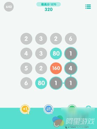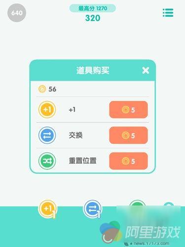 游戏中的道具可以来挽救困境,共有三种道具,分别是灰色棋子数值+1,相互调换棋子位置以及重新排列所有棋子。没有道具了怎么办,从多次的体验发觉到有两种方式,一种是分享给朋友就会赠送,另外一种就是游戏中自带的蚂蚁币进行购买。还好老师有数千的蚂蚁币,应该不会察觉到吧!