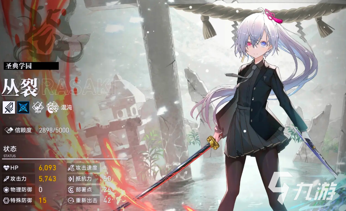 丛裂的特性能在出击后15秒内,让自身的攻击力提升30%,但是在出击期间血量会慢慢减少,她的“崩花雪月”会向前方放出8次攻击力16%的物理攻击,她的“里一闪”会向前方大范围放出1次34%5击的真实伤害攻击。