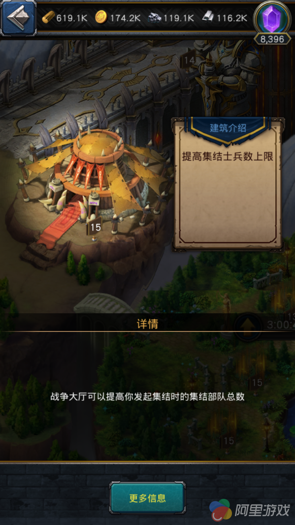 提高集结时的士兵数量,很重要,中后期打架还是叫上盟友,如果你经常开黑打仗,这个最好优先升级,如果你比较喜欢单机,就可以排后一些,地位和英雄神庙不相上下,只是很多人用不出效果而已。