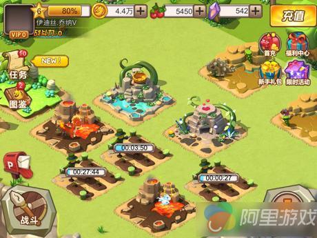 但之所以这还是一款模拟经营游戏,原因在于对于战斗玩法游戏并没有设计的很深入和融入。虽然在恐龙类型的组合、等级提升、升星、装备搭配方面内容很多,但是并没有如卡牌游戏一般更加深入的设计出碎片之类,因此玩家在战斗力的培养上主要还是简单的通过养殖食物提升恐龙等级,为他们提供良好的装备即可。而且在战斗系统中每天还有有限的体力值设计,因此换句话说本作是在经营玩法中融入了策略卡牌玩法。