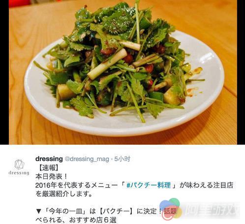 日本2016“今年的一盘”年度美食关键词评选结果已经公开了。其中“香菜料理”凭借超高人气,PK掉了两万多种美食,成为了年度冠军。香菜确实是今年霓虹美食界的黑马,许多餐厅把香菜从辅料变为主食材,推出香菜火锅、香菜沙拉、香菜自助餐等,啃香菜已成为了社会潮流。不少网友表示没想到重口味美食香菜也终于登上了美食界的头把交易,对此我们就来看看网友们的看法吧。