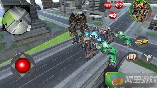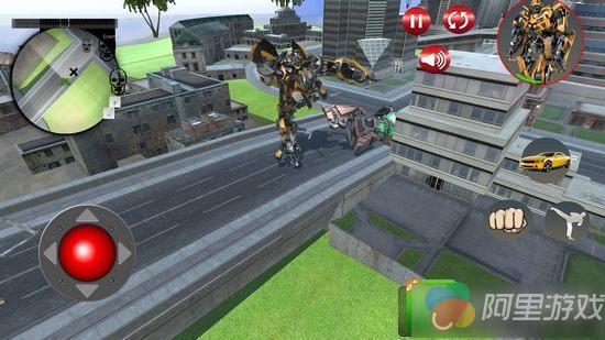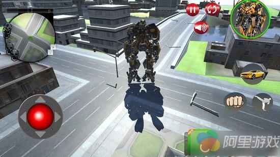 游戏的操作比较简单,玩家们通过屏幕左下角的摇杆来控制机器人走位,右下角则有出拳、出腿两个攻击按钮,点击即可进攻。除此之外在右边还有一个车辆图标,点击即可变换为车辆形态,在车辆形态的时候可以通过按钮来控制车辆转向以及加速和刹车,并且还能使用车载枪械进行攻击前方敌人。唯一不足的是控制效果不算太好,有时会有延迟或者控制不良的状况出现,这多多少少让玩家们的体验过程变得不够满意。