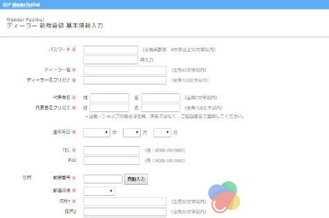 →【ディーラー新規登録基本情報入力】填写报名信息