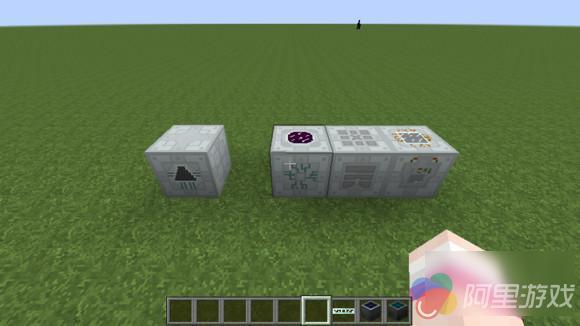 1.首先准备好材料:uu物质生成机,复制机,模式扫描机,模式储存机(具体合成方式我就不发了)像下面这样摆放机器。