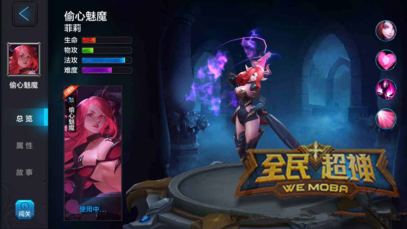 偷心魅魔菲莉全民超神中的魅力女神,有着超高的输出,团战中的APC,强悍的技能,只要被其魅惑到,很可能就会一命呜呼!