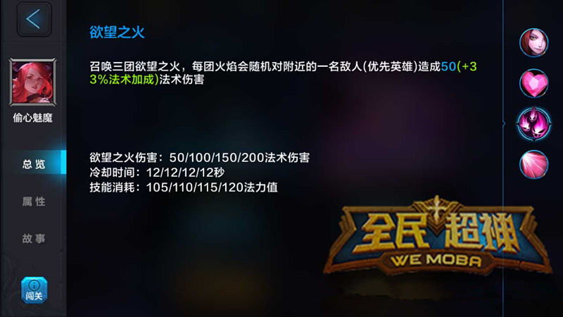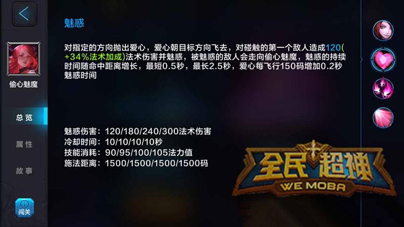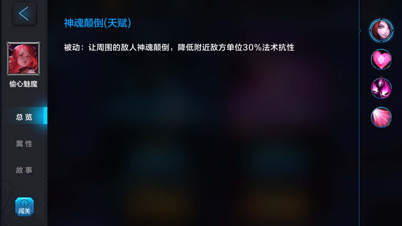 技能介绍:偷心魅魔让她周围的敌人神魂颠倒,降低附近敌方单位的魔法抗性。