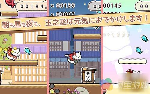 与电视剧不同,手游《玉之丞的出巡》并没有什么剧情,是一款轻松、治愈的跑酷游戏。玩家控制游戏中的各种猫咪在江户时代的不同空间中奔跑,一边跳跃,一边收集各种小鱼,并且可以在游戏中为猫咪们收集各种各样的衣服,用来打扮不同的造型,其实就是一款用跑酷来收集、换装的游戏……大概……