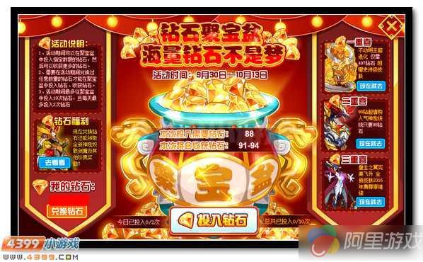 1、在活动期间可以在聚宝盆中投入指定数额的钻石,然后可以收获更多的钻石。