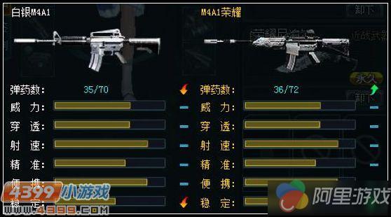 从数据中可以看出M4A1不仅外观炫酷而且各项数据都说明了荣耀系列威力强于其他的一般武器。