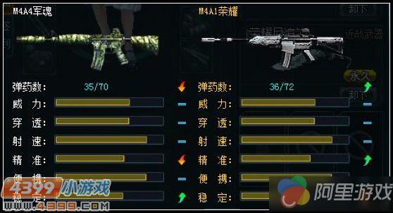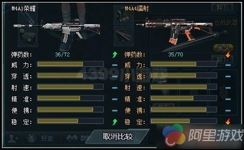 虽说同为M4系列,但周年武器也是有比M4A4镭射好个稳定和弹药,不过我觉得喜欢收藏的玩家现在没有M4A1荣耀可可以买来玩一玩,如果觉得没有收藏意义的话可以买M4A4镭射,毕竟是300金币的差别,而且只差一截稳定,两颗弹药……