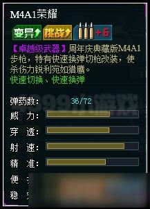 周年庆典典藏版M4A1步枪,特有快速换弹切枪改装,是杀伤力锐利宛如猎鹰。