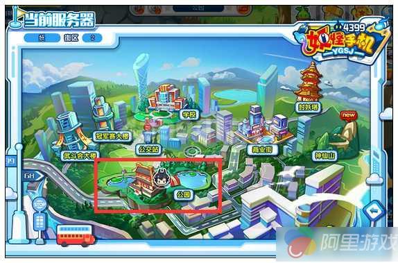 妖怪手机龙宫的入口就是公园里哦!小伙伴们可以通过大地图,来到公园!
