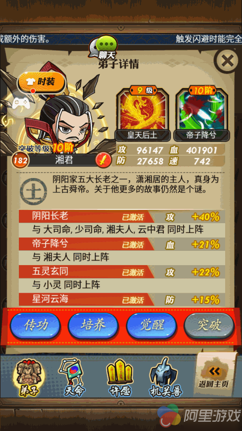 “阴阳长老”与大司命,少司命,湘夫人,云中君同时上阵增加百分之四十攻击力,