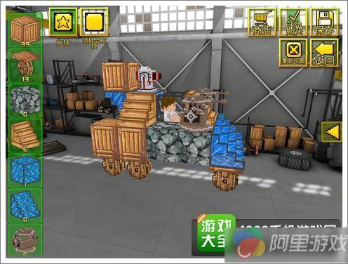 游戏采用了3D引擎制作,以像素风格呈现给大家,我们进入游戏中会看到一个仓库,里面有一台已经组装好的战场,然后大家就可以进入战争去战斗了。本作的战场大多以沙漠或者隔壁为主,当然也有一些城市战场,不过由于像素主体的效果,所以在真实度以及辨析度上都不好,但若在像素系列游戏中来比较,那本作也算是“高清大作”的范畴了,全景360度无死角画面,射击过程弹药呼啸而过的效果十足,任谁来了都会感觉到真正战斗的紧张感。