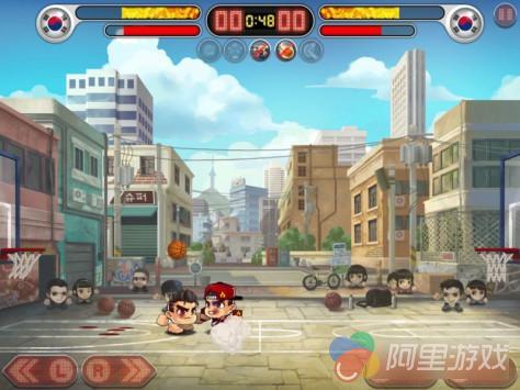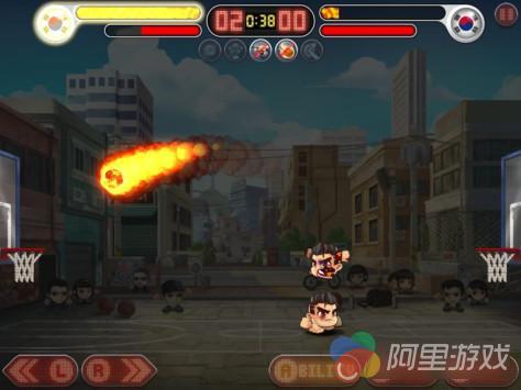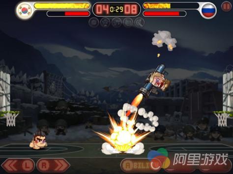 在比赛过程中双方的角色还会不断积累屏幕上方的能量槽,当能量攒满之后就能用出必杀球来直接得分了,各国角色的必杀球有着明显的文化差异,比如忍者是发射飞镖、印度人是用毒蛇来缠绕你、韩国人是火球、战斗民族则是用火箭筒来投篮,这种多样化的角色设计也大大提高了游戏的可玩性。此外,游戏中还有多种赛事可以选项,比如自选模式、杯赛模式、对战模式等等等,但是这些赛事玩法却完全一样,所以打起来并没有什么区别。