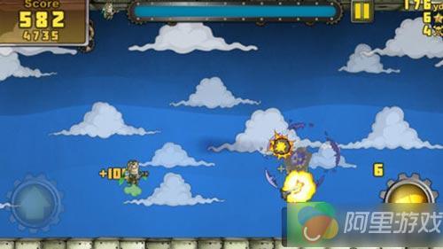 在保持高度的同时,为了不让玩家躲避敌人以及它们射出的弹药太过狼狈,在开始时会为玩家提供10发免费子弹的待遇,玩家可以在飞行的时候摧毁前方的敌人。虽然游戏内没有设置商城系统,补充弹药的来源基本依靠关卡中的资源包获取,眼疾手快的玩家可要注意。