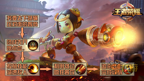 孙尚香:身为江东吴国的小公主,孙尚香并不像一般的大小姐那样娇贵,闺房里摆放的是刀枪棍棒,就连身旁的侍女也会舞刀弄剑……游戏里的大小姐则更像是江东一霸,扛着粗狂而威力强大的机枪,活跃在每一个战场之上!什么,有人挡路?大小姐驾到,通通闪开!