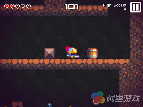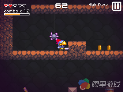 游戏中的操作还是比较简单的,当游戏开始之后,骑士将会自动开始奔跑,而在奔跑的过程中当撞到障碍物之后,骑士才会改变奔跑的方向,而玩家并不能直接控制骑士的移动。通过点击屏幕的左侧,玩家可以让骑士进行跳跃,当骑士跳到墙壁上之后,玩家还可以再次点击进行二次跳跃,玩家可以利用这样的操作到达更高的地方。而点击屏幕的右侧,玩家可以让骑士挥起手中的长剑往前突进一段距离,沿途的敌人都将会被消灭。
