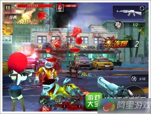 游戏采用了3D引擎制作,玩家们将进入一个卡通世界,这里的人类世界已经被僵尸病毒所感染,所以街道上随处可见行走的僵尸。游戏画面比较抽象化,所有的角色和僵尸都采用了菱角分明的硬线条描绘,这让它们看起来比较呆板一些,或许也是游戏想要为大家营造的一种趣味效果。游戏中战斗过程极为血腥,特别是僵尸爆头后的血块与脑浆迸发,看起来确实有点过于血腥,对于小朋友们来说并不太好。