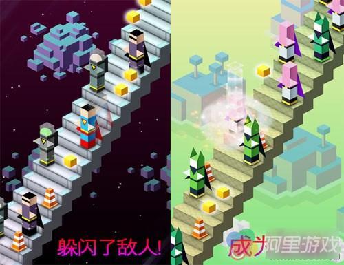 曾开发过《DASHY DUCKS》等休闲游戏的Appsolute Games LLC昨日于苹果商店上架了他们最新的作品《超级 英雄 世界》(stair HEROES),本作的玩法类似《天天过马路》,而游戏里主人公的运行方向是向下,也就是下楼梯。玩家需要在向下狂奔的同时躲避固定的障碍物,同时避免被身后一同走下的敌人追上或者挡住。
