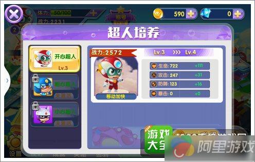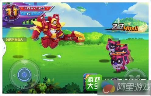 游戏采用了关卡挑战的模式,玩家们将根据游戏剧情进入不同的关卡进行挑战,偶尔还会遇到BOSS关卡,需要与强大的BOSS对战。如果看过《开心超人》的玩家们就应该知道,他们在危难的时候可以召唤机甲战士,本作也是如此,玩家们在遇到强大BOSS的时候,可以召唤战神盔甲,伤害与防御都将有极大的提升。战神盔甲的加入不仅仅冲视觉上增加了战斗的精彩程度,更是给让玩家们闯关挑战没有了后顾之忧。