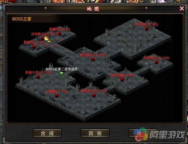 BOSS之家是VIP专属的BOSS地图,通过王城安全区的BOSS之家NPC即可进入!这里是BOSS的老巢,众多凶猛的BOSS分布其中,无数的财宝等待着勇士们的探索。