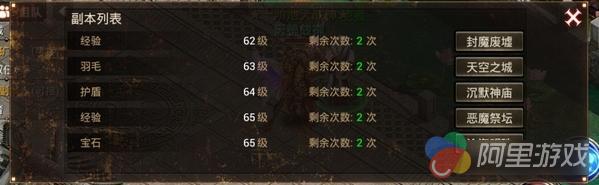 封魔废墟和恶魔祭坛为经验副本,挑战副本即可获得海量经验,在挑战前可使用多倍经验符,经验成倍哦!