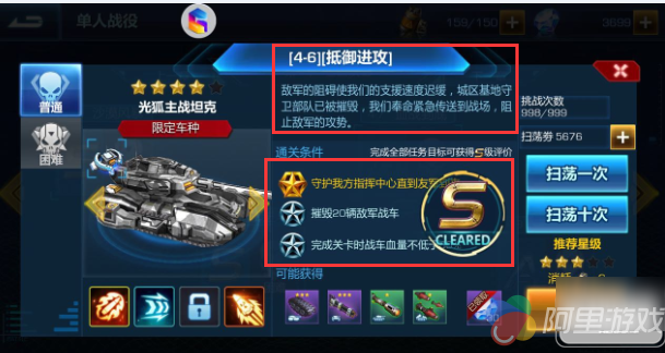 ★ 完成关卡时战车血量不低于80%