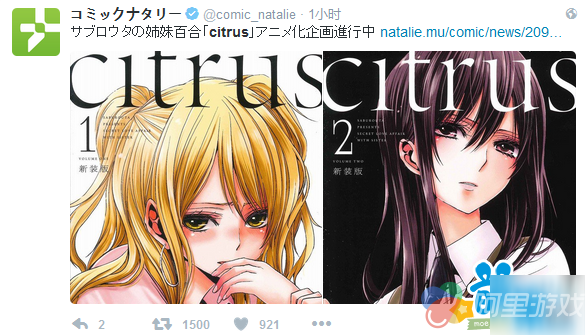 今天额外躁动的一迅社除了宣布旗下漫画《捏造陷阱-NTR-》的动画化外,另一部人气百合漫《citrus》也在同时宣布了动画化得消息。