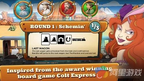《柯尔特列车》(Colt Express)是著名桌游公司Ludonaute在2014年推出作品,目前这款游戏已经登陆AppStore,移动版是一款卡通风的回合制战略游戏。在游戏中,玩家将扮演一名布屈帮劫匪,你的目的就是抢劫乘客的珠宝、金钱。目前游戏中共有6个角色提供给玩家,每个角色都有其特殊能力,比如有的角色可以让你多抽一张牌,有的则是可以把另一个劫匪射击到更远的车厢等等。据说移动版还将加入新的游戏规则、新变种、项目和皮肤,喜欢的玩家可以自己尝试。