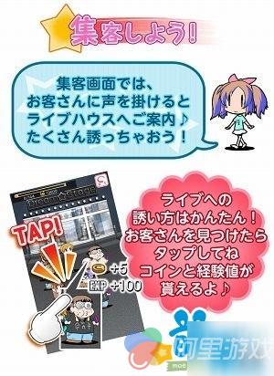 本作是一款操作简单的地下偶像育成游戏,玩家是一名偶像事务所的经纪人,但这家事务所却只有一个少女新人偶像。玩家通过点击收集演唱会会场外的客人,举行live,如此重复以提升少女偶像的等级。随着等级的上升,能解锁多种服装!