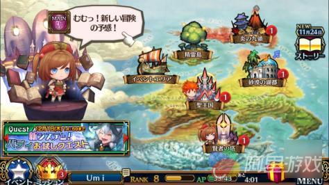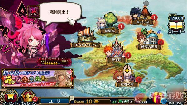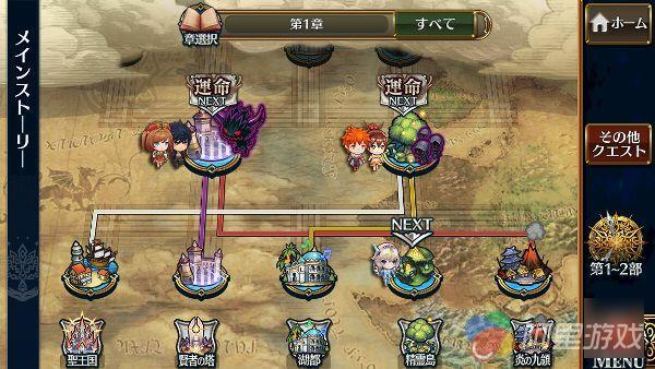在世界地图上你会看到选择不同的主角则进入不同的选关场景,登场的同伴和职业也会随之变化,比如“圣王国篇”的战士赫利奥斯、“贤者之塔”的法师艾丽谢、炎之九领的武士アマツ、沙漠湖都的舞娘恩塞尔、妖精岛的医者萨蕾斯蒂等等,玩家进入不同的主线也将收获到不同的伙伴、强化道具以及主线奖励。