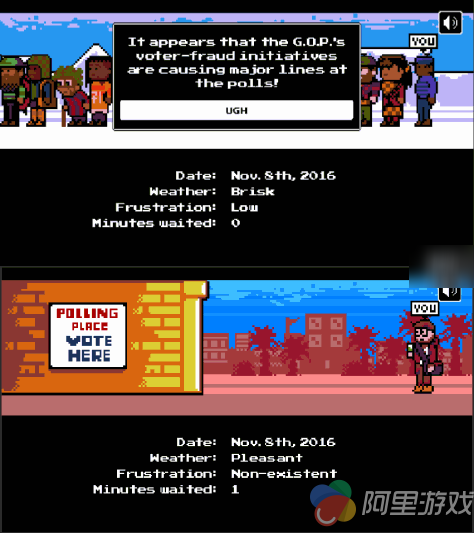 哦对了,在《选民抑郁之旅》的结尾,玩家还可以跳转到一个网站,看一看11月8日的现实投票站点——美国人民大概可以从这个游戏中获得双重的喜悦。