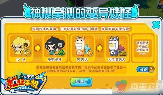 就是获得妖怪时,妖怪有概率变异为特殊的稀有形态~