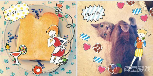 最后是几款非常日系的滤镜,种类不多,不过配合这些可爱的贴纸,正好可以做出特别俏皮和梦幻的效果。