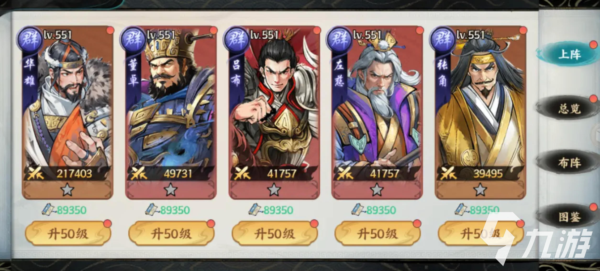 群雄阵型以麻痹效果为特点,有较强的控制、输出能力。群雄阵容里的主要将领有吕布、左慈、董卓、张角、华雄。各个将领都有自己的专长,在战斗中可以互相配合,产生强大的合力。左慈、张角、华雄可以给敌人加麻痹,使敌人的防御大幅度下降,限制敌人的行动,大大提高了群雄阵容的控制力。董卓利用麻痹效果来获得护盾增益,提高自己的坦度,在敌人持续攻击的时候能够保护好自己的阵型。
