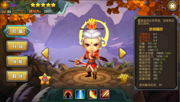 作为一个敏捷系中排武将,赵云的属性成长以敏捷为主,相较于其他武将来说,各项数值都处于一个相对较高的水平,可谓是全能英雄。