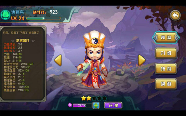 由于诸葛亮是七日豪礼赠送的武将,所以关于获得途径就略过了,多多募集灵魂石,早日成为五行神将才是王道。