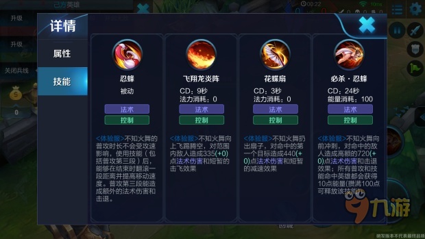 【必杀·忍蜂】:不知火舞向前冲刺,对命中的敌人造成高额的法术伤害和击退效果;并减少他们的攻击力持续2.5秒;技能命中回复25点能量。