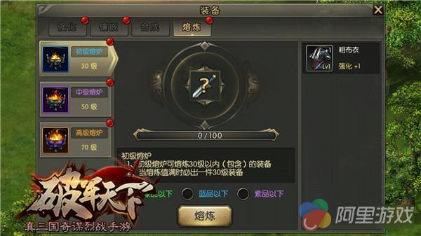 当英雄拥有高等级装备后,通过熔炼低级装备可以获得高级装备,这样的买卖稳赚不赔,更有了中变废为宝的感觉。在混乱厮杀的战场上,装备将是将士们最信赖的伙伴之一,一味向前的同时,不要忘记提升装备的实力,兄弟知己难遇,拥有得心应手的装备何尝不是难能可贵。